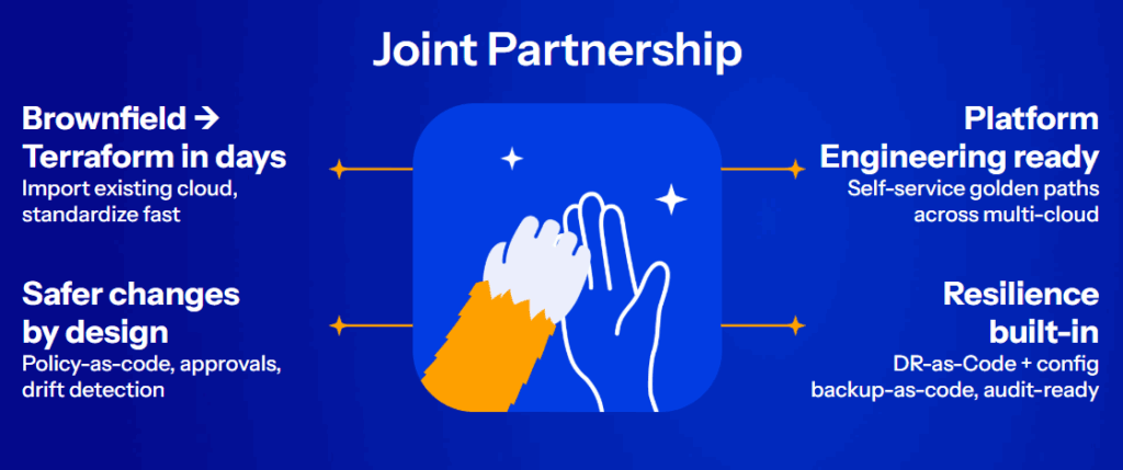 Now, partners can import existing customer environments into Terraform in days, not months, and deliver safer, faster change with built-in policy-as-code, approvals, and proactive compliance checks.