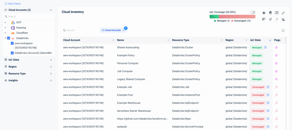 - Get Cloud Inventory for Databricks Terraform Provider – visualize and monitor all workspace configurations.