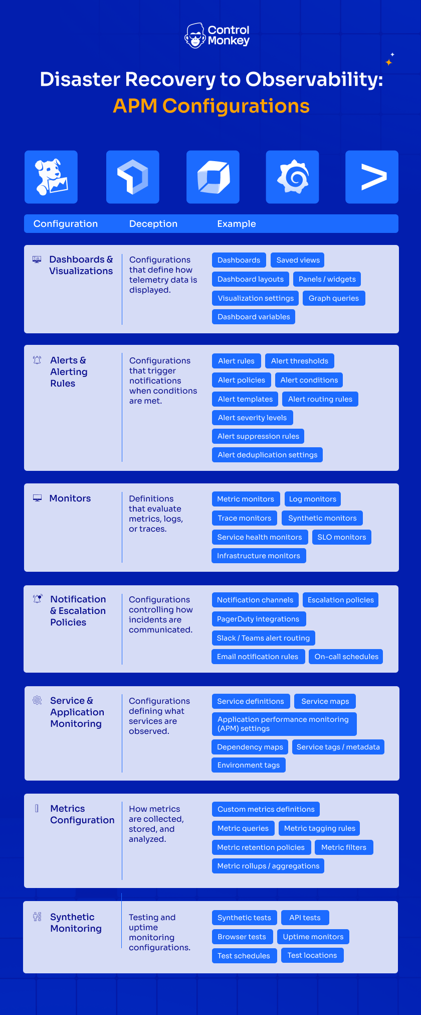ControlMonkey now extends Cloud Configuration Disaster Recovery to observability platforms, protecting monitoring environments across Datadog, New Relic, Dynatrace, Grafana Cloud, and Splunk.