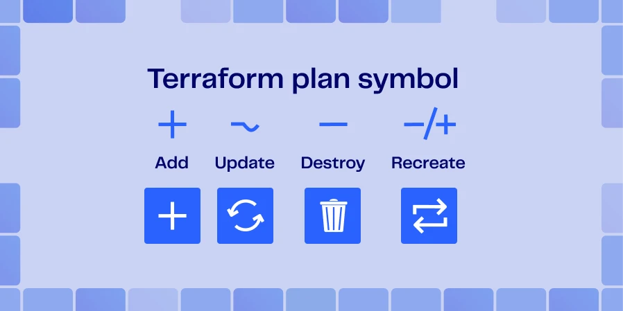 Understanding the actions taken on resources configured through the Terraform commands can be understood through the execution plan created by Terraform. Learning these signs is important for identifying problems early on. In Terraform, a resource lifecycle is denoted by symbols; created (+), destroyed (–), recreated (-/+), or updated in place (~). When a plan summary is generated, Terraform also summarizes the total changes made, for example, ‘2 to add, 1 to change, and 0 to destroy’, giving a clear picture on ‘blast radius’ for the reviewer.