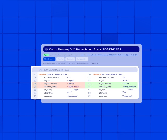 As the only fully end-to-end Terraform-first automation platform, ControlMonkey gives you full cloud visibility, automatic Terraform code generation, built-in drift remediation, and infrastructure disaster recovery out of the box.