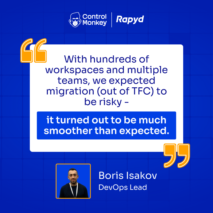 In a recent webinar, “Terraform at Scale: 5 Things Terraform Cloud Doesn’t Provide,” Boris Isakov, DevOps Lead at Rapyd, shared how his team scaled their Terraform operations, what challenges emerged over time, and what led them to move beyond Terraform Cloud.